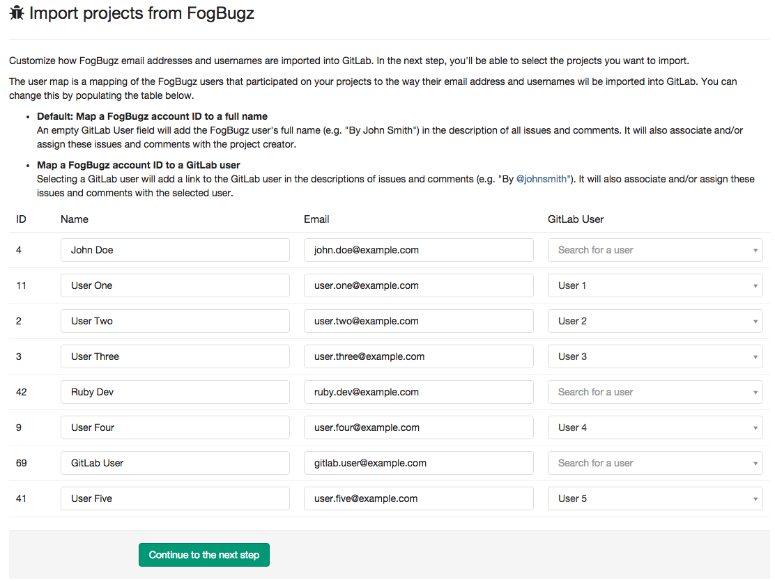 Using the importer, you can import your FogBugz project to GitLab.com or to your self-managed GitLab instance.